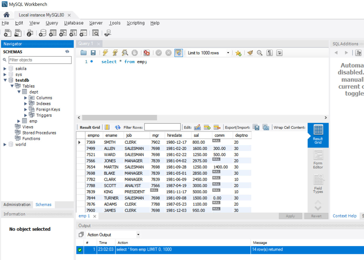 MySql에서 실행되는 결과와 같은 걸 확인할 수 있다.