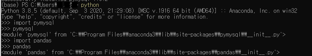 1. cmd 창에 pip install pymysql 입력